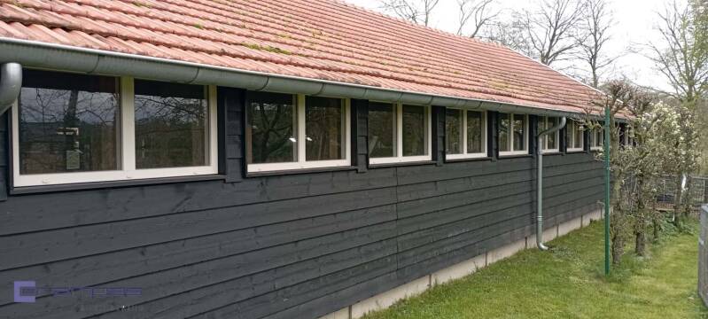 Verbouwing loods tot hobbyruimte in Weert, achtergevel voor en na: (zie ook onze ontwerp/CAD tekeningen voor dit project)